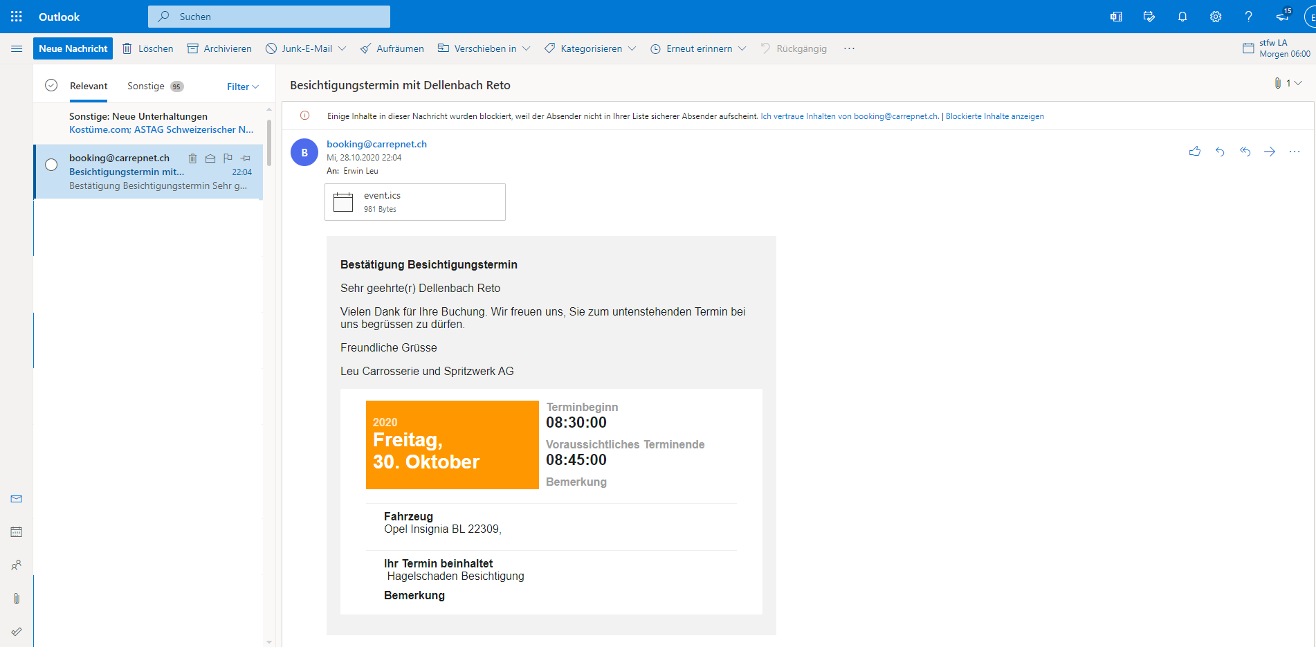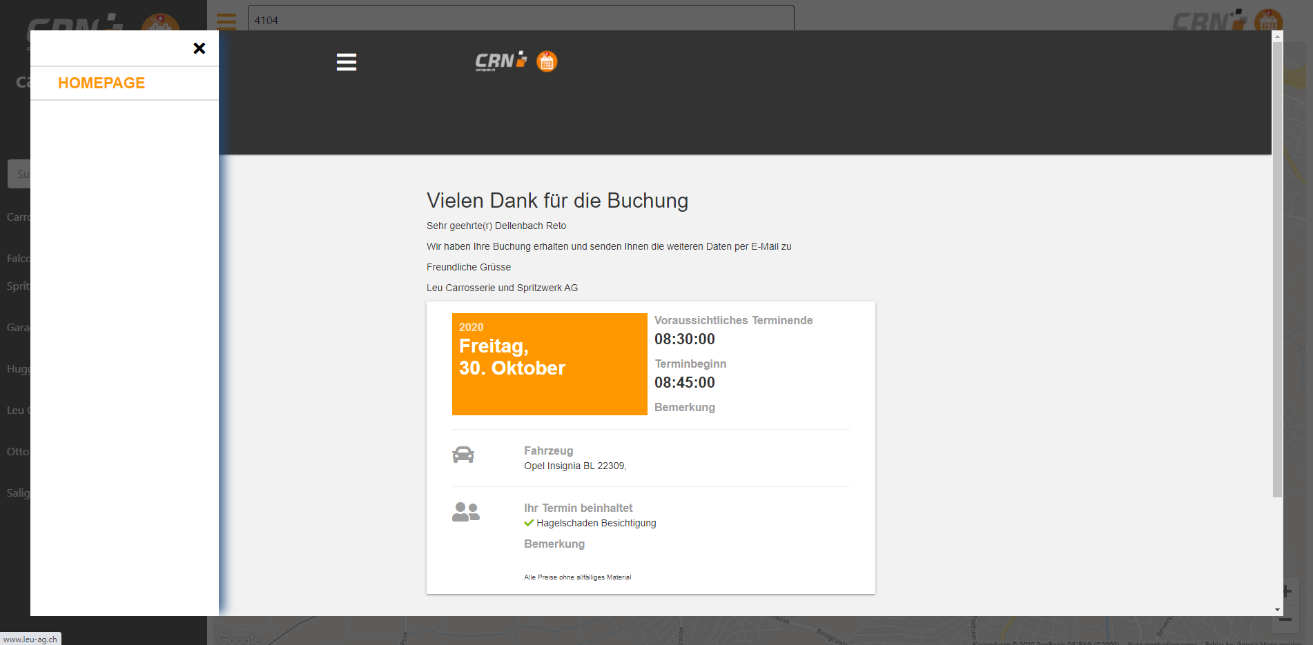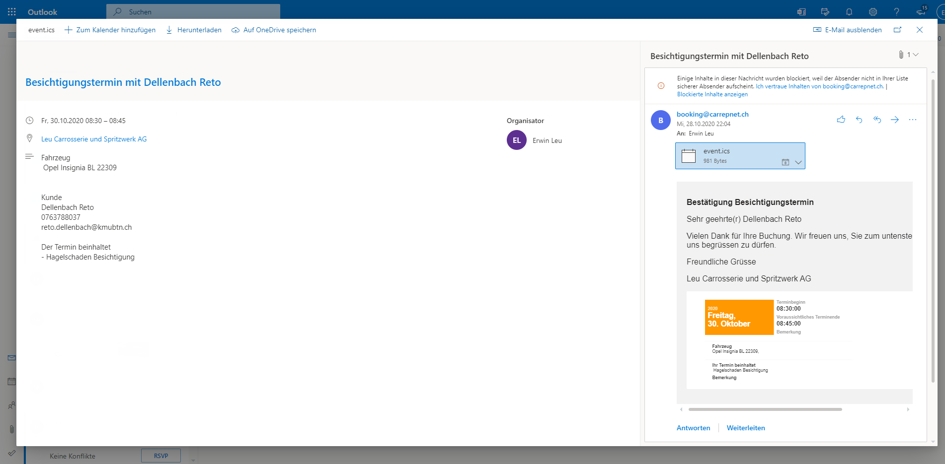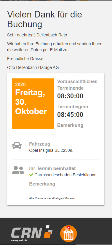 - Buchung eines Besichtigungstermins per Email mit Kalendereintrag (ics) im Anhang an Fahrzeughalter und Werkstatt