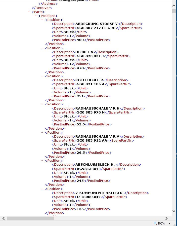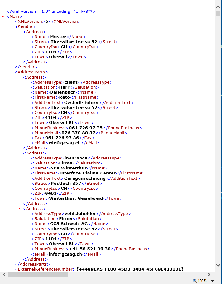 - Auftragsübergabe in XML strukturiertem Datenfile